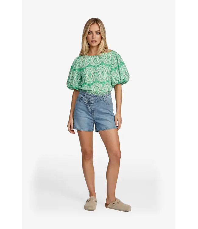 Stoer met een speelse twist. De Gwenn short is een denim essential met een opvallende asymmetrische sluiting die meteen in het oog springt. De lichte wassing geeft de short een frisse, zomerse uitstraling. De rechte fit en comfortabele stof maken hem perfect voor elke dag. Combineer met een basic top of een luchtige blouse voor een casual look met nét dat beetje extra.