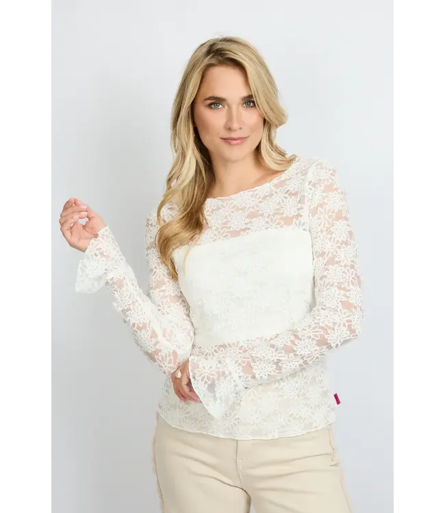 Delicate, but make it powerful. De LUMA TOP heeft een aangesloten fit en is volledig uitgevoerd in verfijnd bloemenkant voor een romantische uitstraling. De licht uitlopende mouwen geven een speelse touch en zorgen voor extra elegantie. Dankzij de voering bij het lijfje draag je ’m comfortabel, terwijl de mouwen subtiel doorschijnen. Draag ’m solo voor een feminine look of laat ’m subtiel onder een tee uitkomen voor een trendy layered effect. Soft, stylish en net even anders.