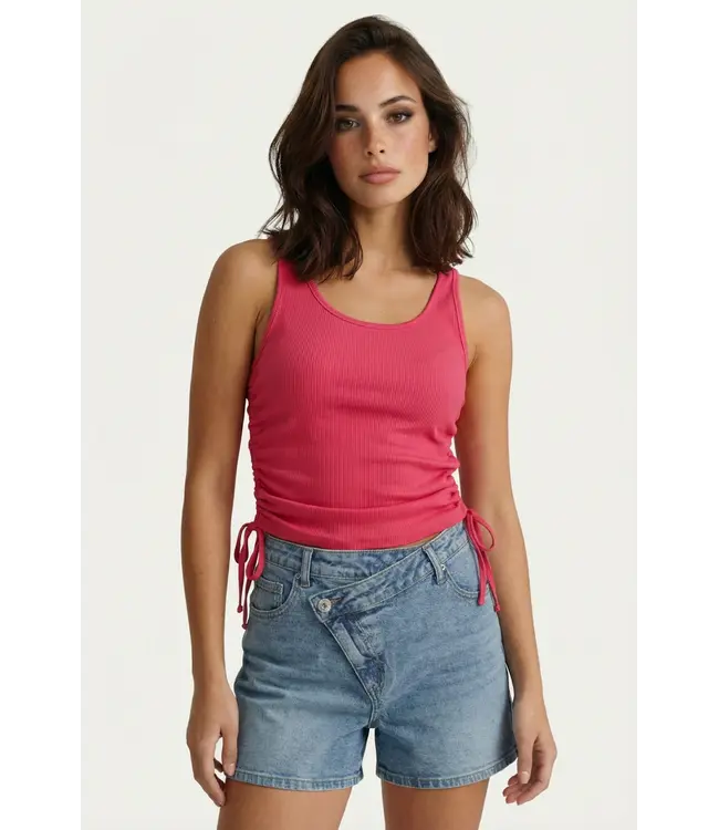 De Milly top is een fijne basic met een speelse twist. De aansluitende fit en ronde hals zorgen voor een clean silhouet, terwijl de strikdetails aan de zijkanten een subtiel en vrouwelijk accent toevoegen. Gemaakt van een comfortabele ribstof die mooi met je meebeweegt. Ideaal om los te dragen of te combineren met een jacket of blouse.
