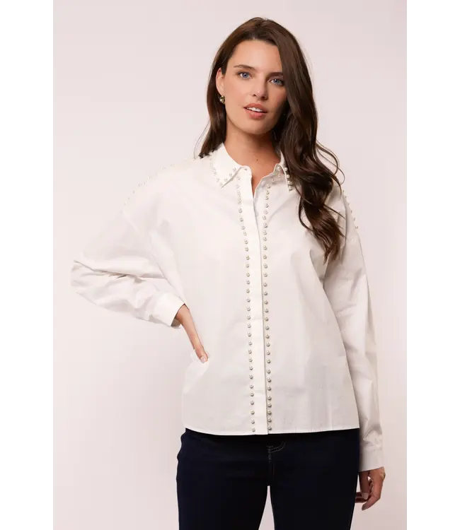 De Idris blouse is een elegante eyecatcher met verfijnde pareldetails langs de schouders en knoopsluiting. De rechte pasvorm en klassieke look maken deze blouse perfect voor zowel zakelijke als feestelijke gelegenheden. Combineer met een pantalon of rok voor een sophisticated uitstraling.