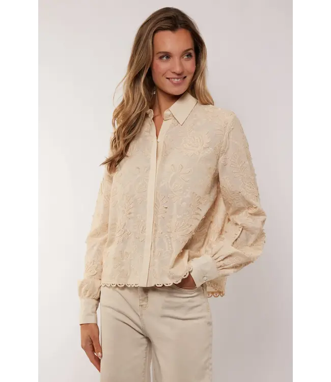 De Molly blouse is een echte eyecatcher binnen je garderobe. De verfijnde embroidery geeft het item een rijke uitstraling, terwijl de luchtige stof zorgt voor een comfortabele fit. De klassieke kraag en doorknoopsluiting maken de blouse tijdloos en veelzijdig, perfect voor zowel een geklede look als een meer ontspannen styling. Draag haar los op een broek of combineer onder een blazer voor een vrouwelijke, stijlvolle uitstraling met karakter.