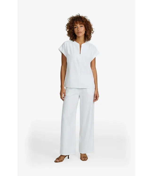 De Noora broek heeft een wijde, soepel vallende pasvorm die zorgt voor een elegante en ontspannen uitstraling. De elastische tailleband met strikdetail biedt extra comfort en een flexibele fit. De gladde stof valt mooi langs het lichaam en geeft het ontwerp een rustige, verfijnde look. Combineer de broek met de bijpassende Rauha top voor een stijlvolle co-ord set.