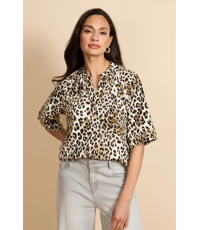 De Penelope top is een stijlvolle blikvanger met een tijdloze panterprint. Het model heeft een ronde hals met een subtiele V-inkeping en een losvallende pasvorm die soepel om het lichaam valt. De halflange mouwen met lichte volume geven de top een moderne en vrouwelijke uitstraling. Perfect om te combineren met een jeans of nette broek voor een krachtige, eigentijdse look.