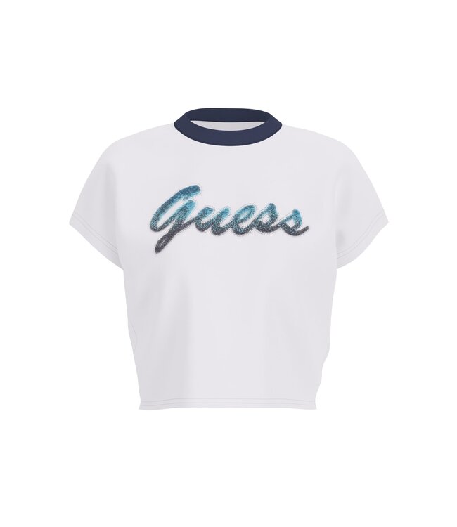 Shop de Guess T-shirt Script Crop Pure White nu bij Iconic Musthaves!