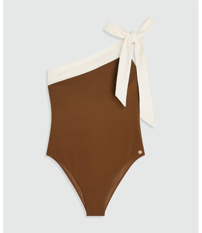 Of je nu aan het zwembad ligt of langs het strand wandelt, het JOSH V Azine badpak in de kleur Brown Ecru is een stijlvolle keuze voor elke beach day. Het one shoulder badpak is gemaakt van gerecycled polyester met stretch en voorzien van een verstelbaar strikbandje op de linkerschouder. Het badpak is gevoerd, en voorzien van verwijderbare padding. Stijltip: draag het item niet alleen als badpak maar ook als chique zomertop met bijvoorbeeld een witte pantalon.