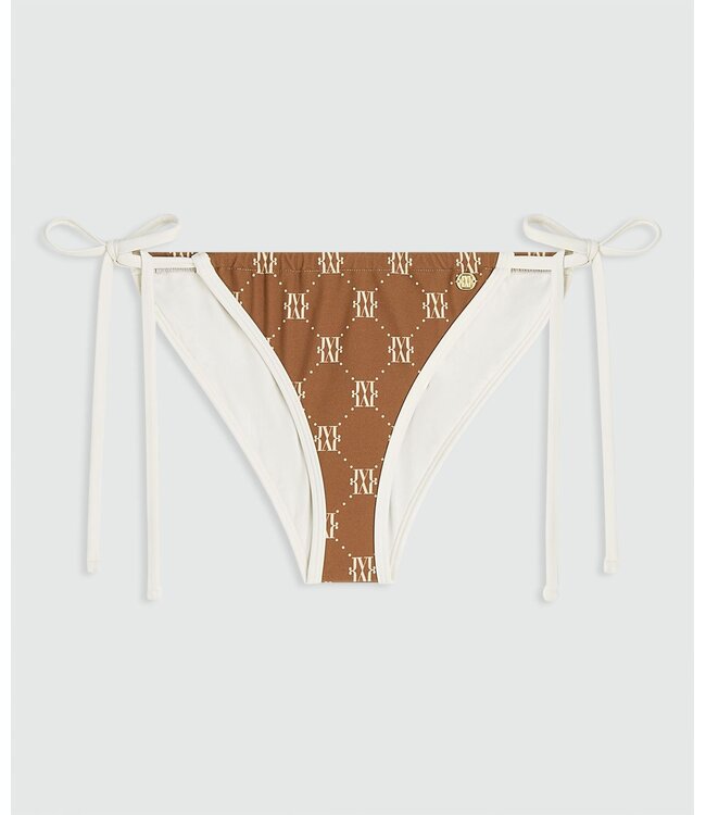 Het JOSH V Harlow bikinibroekje in de kleur Brown Ecru is een mid rise tanga bikinibroekje met een verstelbare striksluiting. Het logo bikinibroekje is gemaakt van gerecycled nylon en elastaan en volledig gevoerd. De all-over logo print geeft het broekje een eigentijdse uitstraling. Combineer het bikinibroekje met andere items uit de JOSH V swimwear collectie.