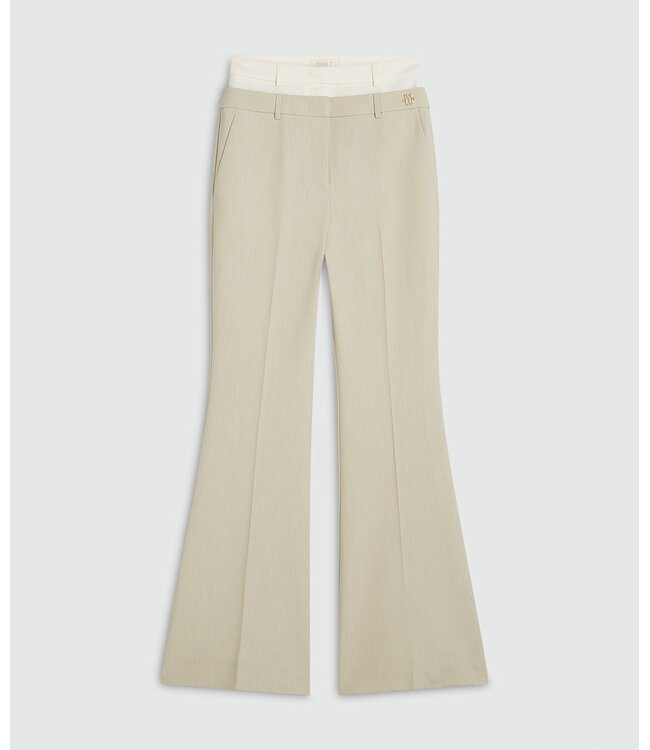 De JOSH V Liora dames broek in de kleur Ecru Melange is een high waisted flared pantalon met een dubbele tailleband en contrasterende details. De pantalon is gemaakt van een comfortabele stof met gerecycled polyester, viscose en stretch. Het ontwerp is voorzien van steekzakken aan de voorzijde, paspelzakken aan de achterkant en een ritssluiting met haak- en oogsluiting. De broek is voorzien van een lange zoom, waardoor je de pantalon kunt verlengen. Combineer de pantalon met de bijpassende Nila blazer voor een complete set.