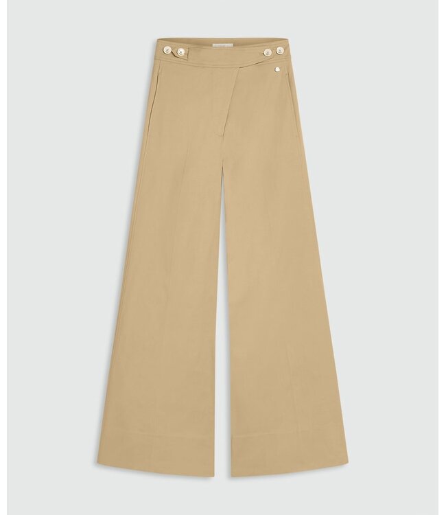 De JOSH V Regina dames broek in de kleur Light Camel is een mid rise wide leg pantalon met een comfortabele en vrouwelijke pasvorm. De pantalon is gemaakt van katoen met stretch, waarvan het katoen is ingekocht via het Better Cotton Initiative (BCI™). De pantalon heeft een mid rise taille en een wide leg fit, met steekzakken aan de voorzijde en paspelzakken aan de achterzijde. De camelkleurige pantalon sluit met een knoop- en ritssluiting en is voorzien van een verstelbare waistband. Daarnaast is de pantalon verlengbaar door de extra lange zoom. Combineer de pantalon met het bijpassende Monet gilet voor een complete, stijlvolle set.