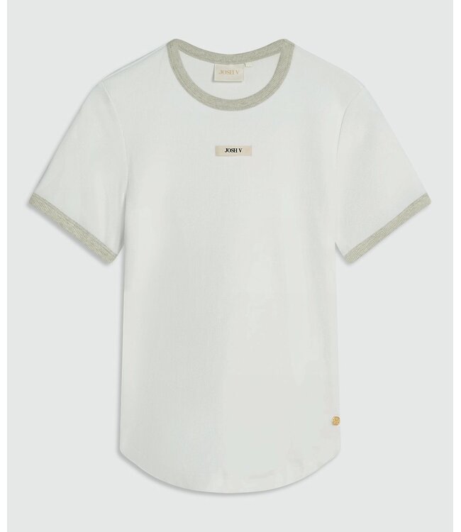 Het JOSH V Cody dames T-shirt in de kleur Off White is een slim fit model met korte mouwen en een ronde hals. Het T-shirt is gemaakt van katoen met elastaan, waarbij het katoen is ingekocht via het Better Cotton Initiative (BCI™). De contrasterende bies en het subtiele JOSH V logo embleem geven het shirt een moderne uitstraling. Stylingtip: Combineer het T-shirt met een high waisted pantalon of denim voor een casual look.