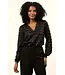 Blouse Amara is een zwarte blouse met V-hals. De zwarte blouse heeft elastieken mouwuiteinden en is gemaakt van een geweven stof met lurexdetails. De blouse is qua pasvorm losvallend.