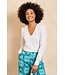 Blouse Harlow is een witte blouse met V-hals en pofmouwen. De stof heeft een lichte glans. De blouse valt los om het lichaam. Een stijlvolle blouse die geschikt is voor zowel werk als een avond uit.
