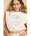 T-Shirt Ravi is een wit T-shirt met een cropped fit en elastiek in de taille. De schoudervulling en mouwloze vorm geven het shirt een krachtige look. De stof rekt mee en zit prettig. Leuk op een high waist broek.
