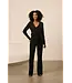 Top Nyssa is een zwarte wrap top. De top heeft een strikdetail aan de linker draagkant en bevat een luxe glinstering. De top is qua pasvorm aangesloten en bevat veel stretch.