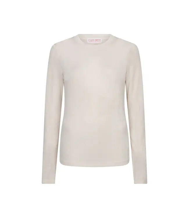 Het Lynn T-shirt is clean, cool en eindeloos te combineren. Het lange mouwen T-Shirt zit mooi aangesloten en toch comfortabel. Er zit een kleine glinstering door het materiaal heen, wat het net even wat minder basic maakt.