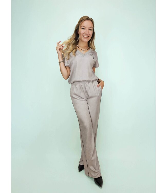 Get ready to shine! Onze Heaven top draagt heerlijk en is een echte eye-catcher. Het sportieve baseball model heeft een stoer uiterlijk, maar is erg vrouwelijk door de mooie glans in de stof. De sterren patch geeft een extra detail samen met de sportieve boord aan de hals en de bies op de schouder. Draag deze top als co-ord set met de bijpassende Hailey broek of leuk casual op een jeans. De stof valt lekker luchtig en soepel. Het is een fijne viscose-mix met mooie shimmer, 40% Viscose (natuurlijk materiaal) & 60% Polyester. Al onze items zijn met liefde gemaakt in Europa. Ga jij stralen in deze top?